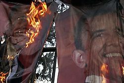 Una asociación estudiantil británica de la Universidad de San Andrés quemó una efigie del presidente estadounidense Barack Obama en protesta por la represión policial hacia los activistas del movimiento Ocupa en ese país.