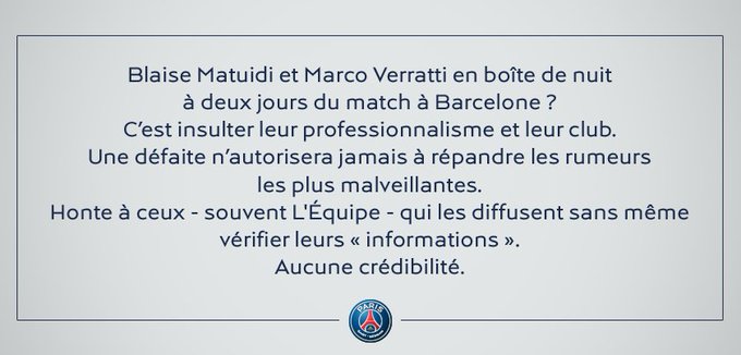 La directiva del PSG salió a desmentir la información a través de Twitter y acusaron a 'L'Equipe' de difundir información "sin verificar" y sin "ninguna credibilidad".