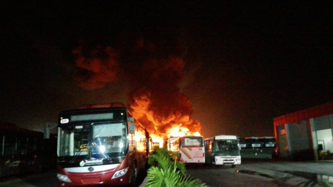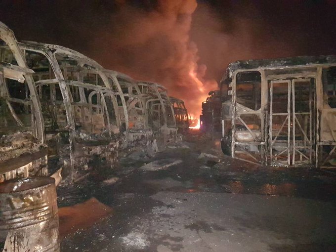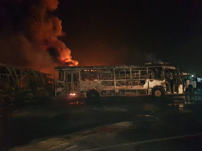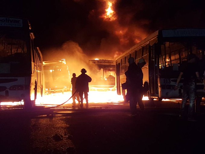 Nuestra empresa @TRANSBOLIVARGEB fue atacada en horas de la madrugada por grupos terroristas, más de 50unidades afectadas #NoMásViolencia