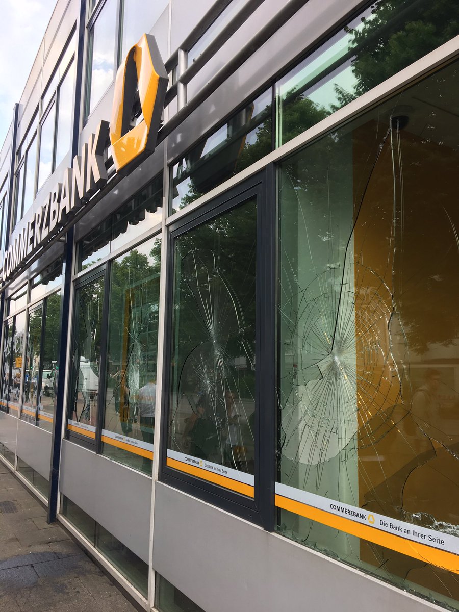 Bancos, grandes multinacionales, todos reventados. La policía ha disparado al aire a modo de advertencia. #NoG20 #G20HH2017 #WelcomeToHell