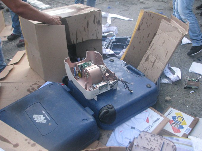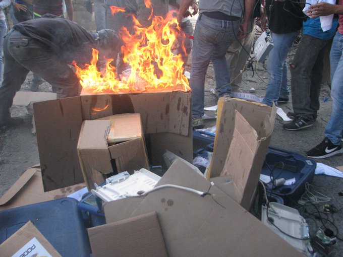 Esto paso en Tovar, el pueblo en rebeldia quemo maquinas del CNE en centro de votación. #Mérida