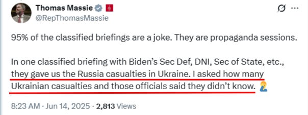 Ahora es un momento así, ya que Marco Rubio ha hecho la absurda afirmación, en coordinación con los principales medios de comunicación, de que el ejército ruso ha sufrido la impresionante cifra de 100.000 muertes tan solo desde enero de este año; puramente muertes, ni siquiera bajas totales.