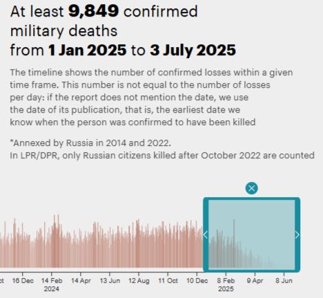 El hecho es que hay una razón por la que MediaZona cambió abruptamente su metodología para incluir muertes "proyectadas" en lugar de las reales contabilizadas, como se había hecho anteriormente: porque, contrariamente a esta campaña de propaganda coordinada, las pérdidas rusas han sido las más bajas en mucho tiempo.