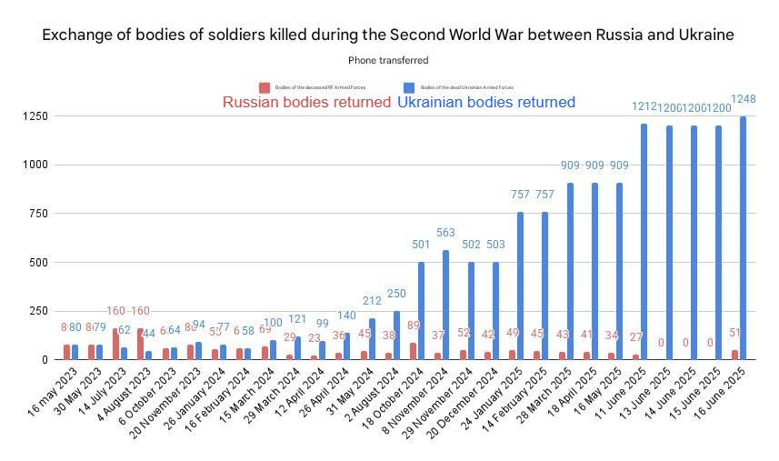 Es extraño cómo son los cementerios ucranianos los que siguen llenándose, infamemente, en lugar de los rusos, y cómo la proporción de intercambios de cadáveres del año pasado ha aumentado a una disparidad tan astronómica que está fuera de serie: