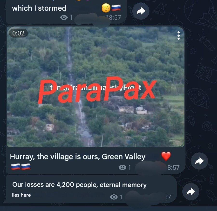 Como un vistazo reciente a las pérdidas rusas durante los asaltos activos, aquí hay una publicación honesta de fuentes militares rusas sobre un asentamiento capturado. Escriben que sufrieron cuatro bajas de 200 durante la operación: