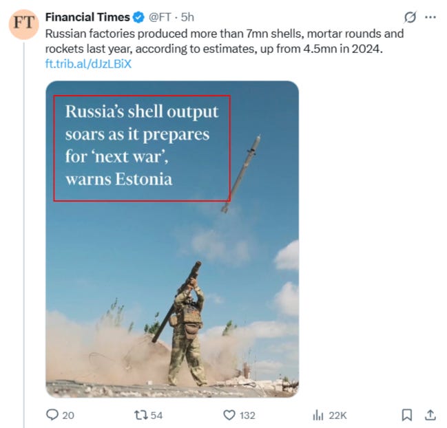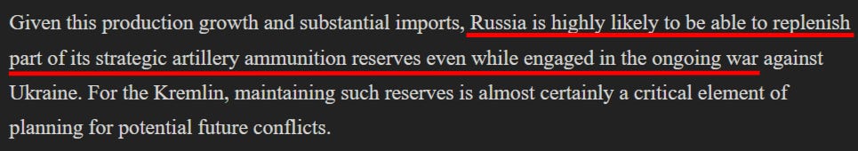 Nuevamente vemos este tema que hemos escuchado antes, que Rusia está regenerando tanta munición, blindaje, mano de obra, etc., que deben estar “preparándose para la próxima guerra”.