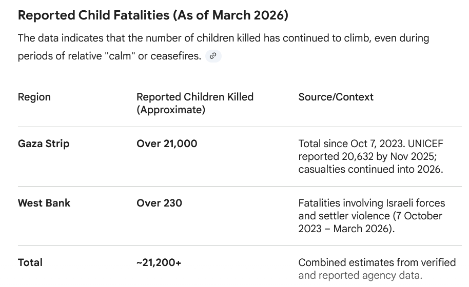 ¿Cuántos miles de niños inocentes deben morir antes de que el mundo entero despierte y se dé cuenta de que ESTOS son los supuestos "malos actores" de los que acusan a otros, ESTOS son los terroristas más letales de este planeta… y sin lugar a dudas, son ESTOS TERRORISTAS DE ESTADO a quienes debemos combatir por todos los medios posibles, destituirlos del poder y encarcelarlos, si de verdad deseamos y estamos comprometidos a que el mundo sea un lugar seguro y propicio para los niños del futuro?